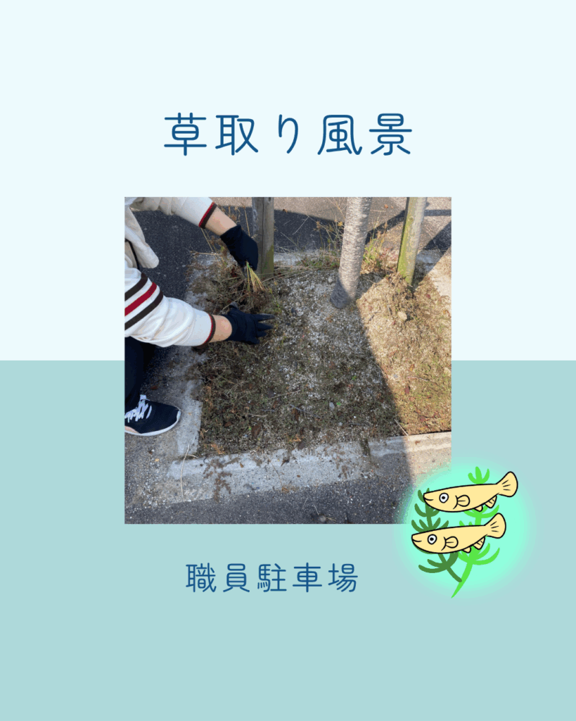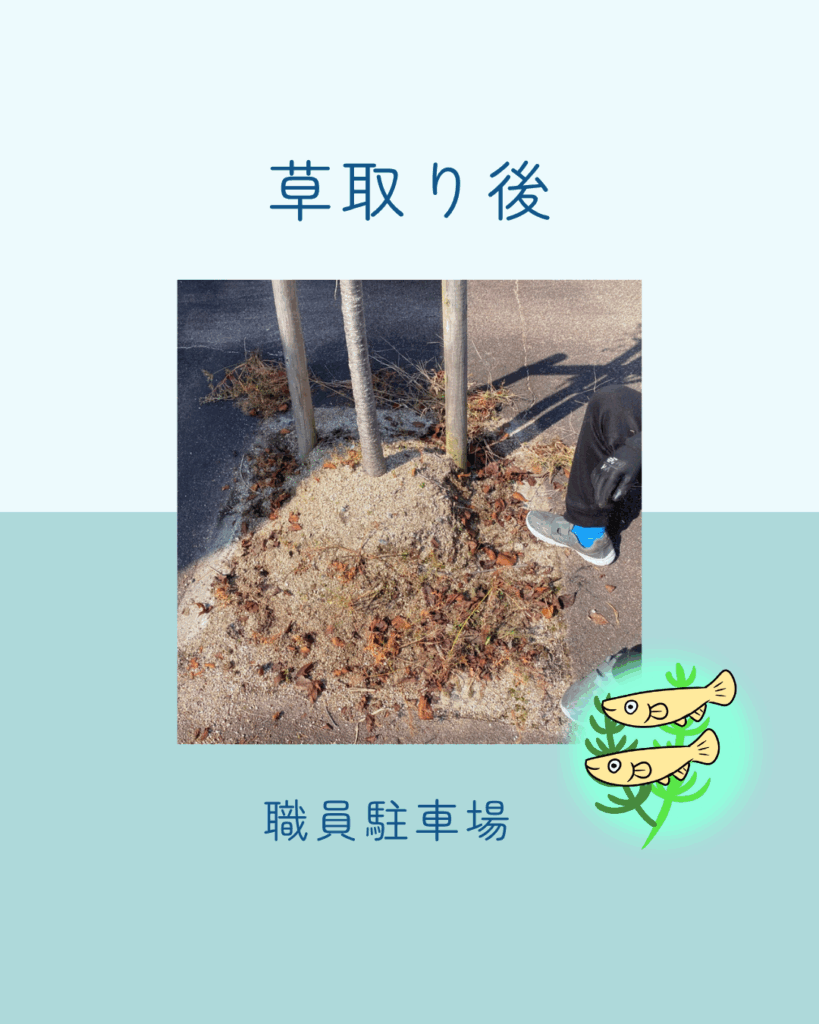 職員駐車場の除草作業をしました。スッキリと綺麗になりました。