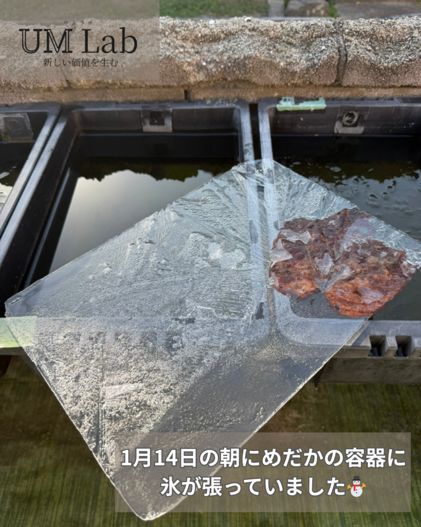 1月14日の朝にめだかの容器に氷が張っていました⛄️