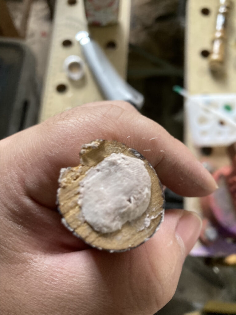 まずこの穴に粘土を詰めます