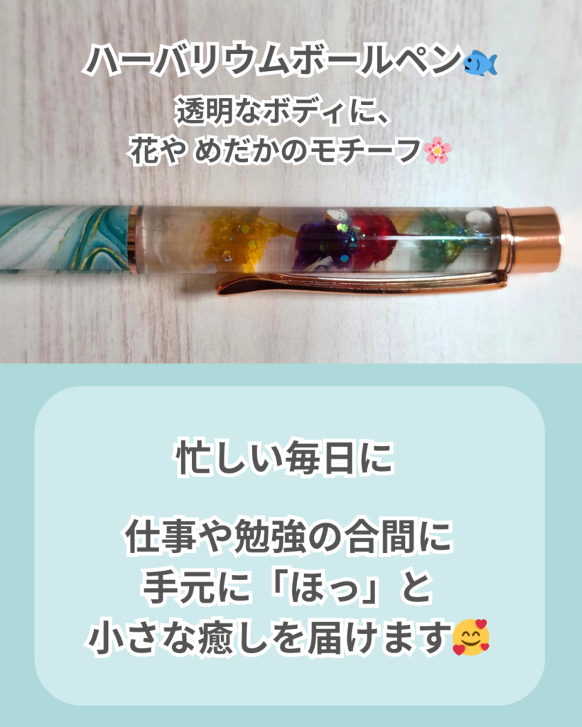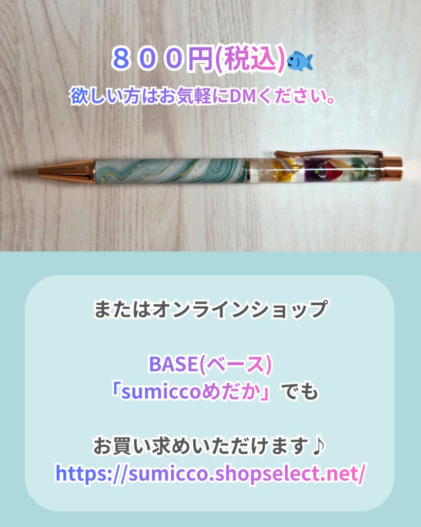 めだかのハーバリウムボールペンをご紹介します。