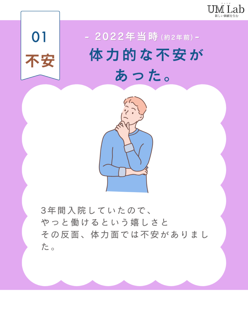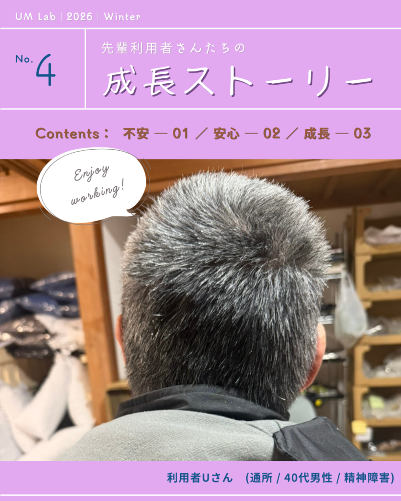 今回は利用者Uさんが入所されてから今までの「不安⇒安心⇒成長」をたどる成長ストーリーをご紹介いたします。