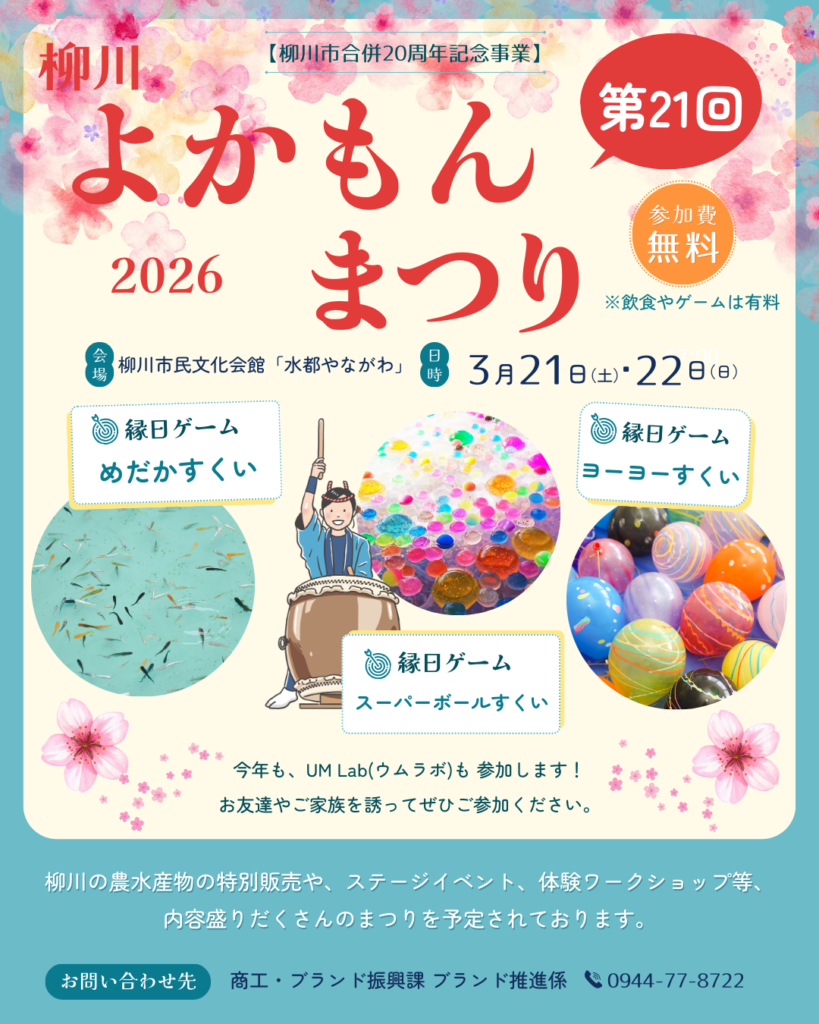 3月21日(土曜日)と22日(日曜日)に、第21回 柳川よかもんまつりが開催され、今年もUM Lab(ウムラボ)も参加します!