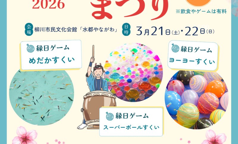 柳川の農水産物の特別販売や、ステージイベント、体験ワークショップ等、内容盛りだくさんのまつりを予定されております。